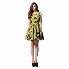 女士时尚优雅的无袖低领印花舞姿连衣裙,尼斯纹理