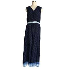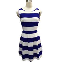 女士时尚尼斯打印圆领无袖Sundresses,尼斯纹理