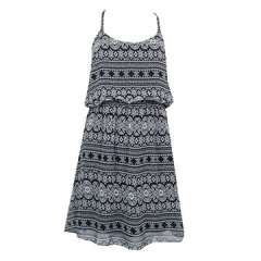 女士时尚尼斯打印圆领无袖Sundresses,尼斯纹理