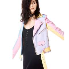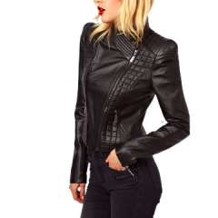 拼布PU皮夹克