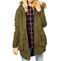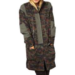 女士迷彩印花大衣,拉链封口,两个胸前的口袋