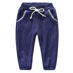 男孩棉条纹长裤