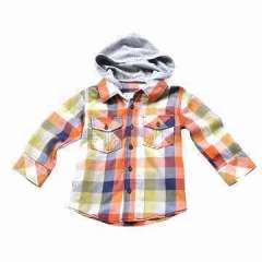 男孩的方格休闲衬衫,棉面料,长袖,针织帽