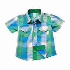 男孩休闲方格衬衫,棉面料,短袖,2个胸前口袋,定期合身