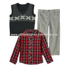 男孩套装,服装灰色Argyle毛衣背心,格子衬衫&灯芯绒裤子设置