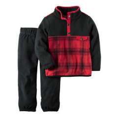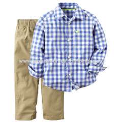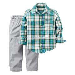 男孩法国Terry连帽格子花呢绒纽扣衬衫和慢跑裤子套