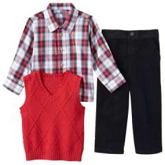 男孩伟大的人毛线衣背心和灯芯绒裤子设置