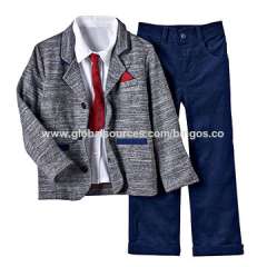 小孩男孩法国Terry针织外套,衬衫和灯芯绒裤子设置与领带