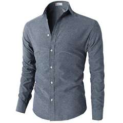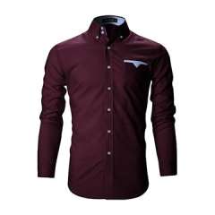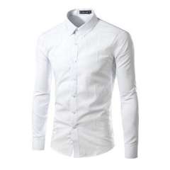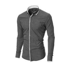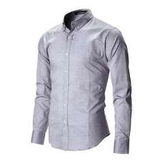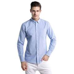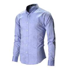 男士修身贴身按钮领休闲长袖衬衫