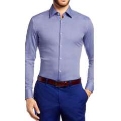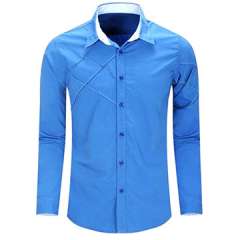 男士修身长袖舒展连衣裙衬衫,纯色