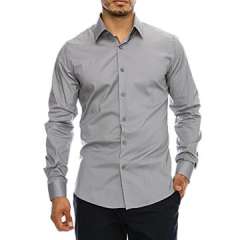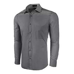 男士修身长袖衬衫上衣,时尚休闲和舒适,灰色&2XL