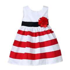 女婴公主无袖花条纹太阳裙
