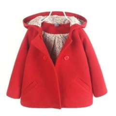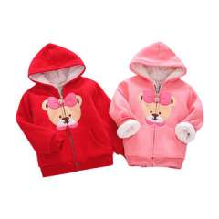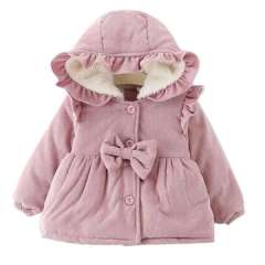 宝贝女孩秋冬季温暖按钮蝴蝶结连帽外套