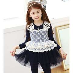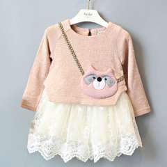 女孩的长袖连衣裙秋天,棉和蕾丝,OEM服务被接受