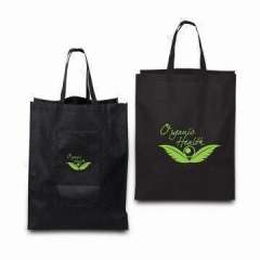 黑色促销手提袋,由无纺布或聚酯材料制成,适合作为促销用品