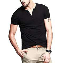男士V领T恤与V领,白色和黑色,紧身配戴