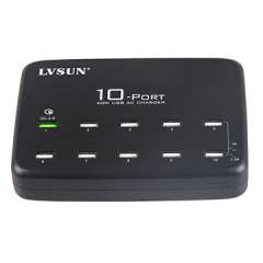 12A 60W 10端口USB集线器充电器,100-240V交流,1.6A 50 / 60Hz输入