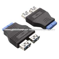 2端口USB 3.0 A母头到主板20针适配器