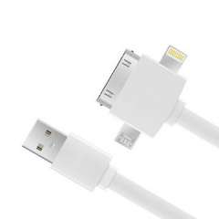 绿色和白色适用于iPhone 4 / 4s,Micro USB,迷你,w / CE,FCC标记的3合1 USB数据线手柄