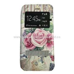 对开设计站立PU皮手机盖盒,带夹,OEM订单,双方均可使用