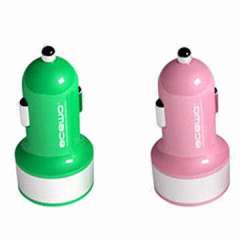 粉红色绿色双USB车载充电器的手机