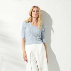 女式针织毛衣,由55%亚麻和45%亚克力制成