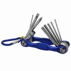 9个带铝外壳和LED手电筒的折叠钥匙套件,采用阳极氧化的颜色