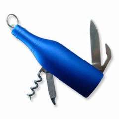 带刀刀片和小钥匙圈的瓶形酒开瓶器