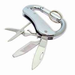 不锈钢刀片/工具和铝盖不锈钢颜色的Carabiner口袋刀