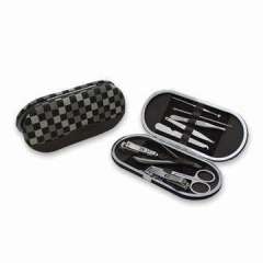 典雅的修指甲设置与皮革案件和不锈钢剪刀