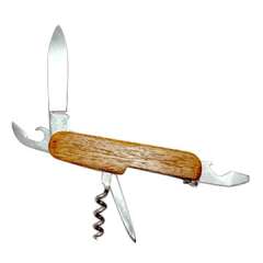 有不锈钢工具和木把柄的高尔夫刀。