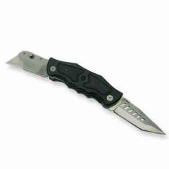 折叠实用刀/纸箱切割机与黑色氧化铝涂层铝合金和橡胶镶嵌手柄