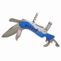 照明开瓶器带刀片和LED手电筒;阳极氧化铝手柄