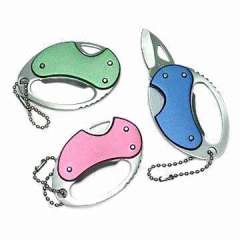 锁扣式小折刀带开瓶器,不锈钢制成,包括钥匙扣