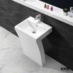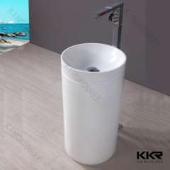 纯白色底座浴室固体表面独立洗手盆