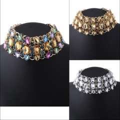 豪华闪闪发光的水钻时尚多彩水晶钻石脖子项链首饰