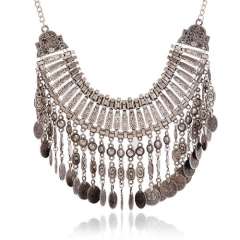 项链复古合金硬币流苏时尚Choker声明项链首饰