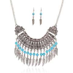 时尚复古叶流苏波希米亚语声明项链耳环首饰套