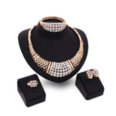 水钻锆石项链耳环手链戒指时尚4 PCS珠宝套装