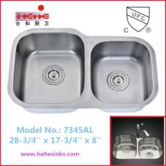 Double Bowl Kitchen Sink with Undermount Installation (7345AL)