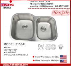 60/40双碗不锈钢厨房水槽与Cupc批准(8153)