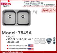 304 Stainless Steel Undermount 50/50 Kitchen Sink 7845A