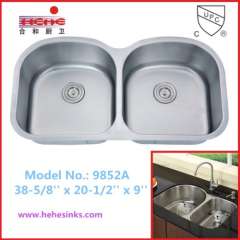 Cupc认可相等双碗不锈钢厨房水槽(9852)