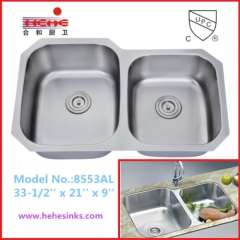 下挂式双碗不锈钢厨房水槽(8553AL)