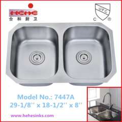相似尺寸双碗不锈钢厨房水槽(7447)
