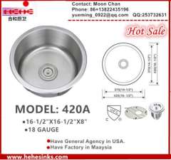 圆形不锈钢水槽,酒吧水槽,厨房水槽(D420A)