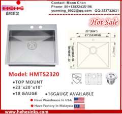 不锈钢手工顶部厨房水槽