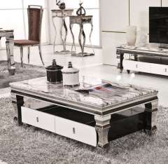 现代新的设计大理石顶面咖啡桌与抽屉