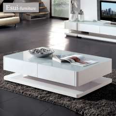 白色钢化玻璃加MDF咖啡桌集