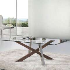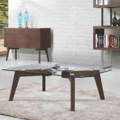 玻璃咖啡桌与实木和不锈钢腿(C288b)